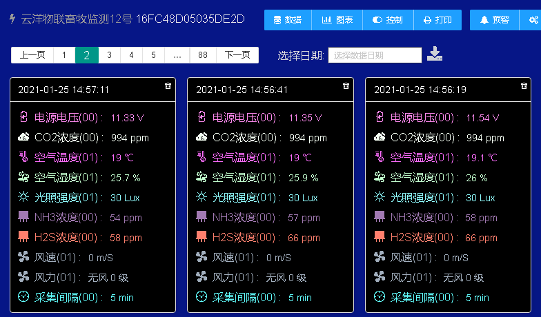 利用傳感器可以監(jiān)測養(yǎng)殖場內(nèi)外空氣清新度、PM1.0、PM2.5、PM10、TSP、GPS衛(wèi)星定位經(jīng)緯度、噪聲、空氣溫度、空氣濕度、NO2、O2、O3、H2S、CO、NH3、SO2、HCl、HF、Cl2、大氣壓力、風(fēng)速、風(fēng)向、雨雪傳感、光照強(qiáng)度、紫外輻射強(qiáng)度等項(xiàng)指標(biāo)。又可根據(jù)用戶需求定制其他測量要素。