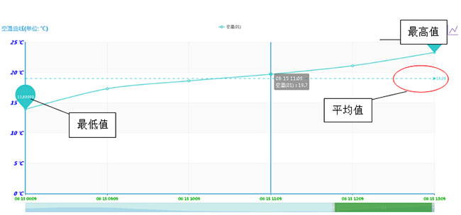 D、通過曲線走勢或立柱式統(tǒng)計,更能直觀形象的查看某一時間段內(nèi)的數(shù)據(jù)最高值、最低值和平均值。詳見如下: