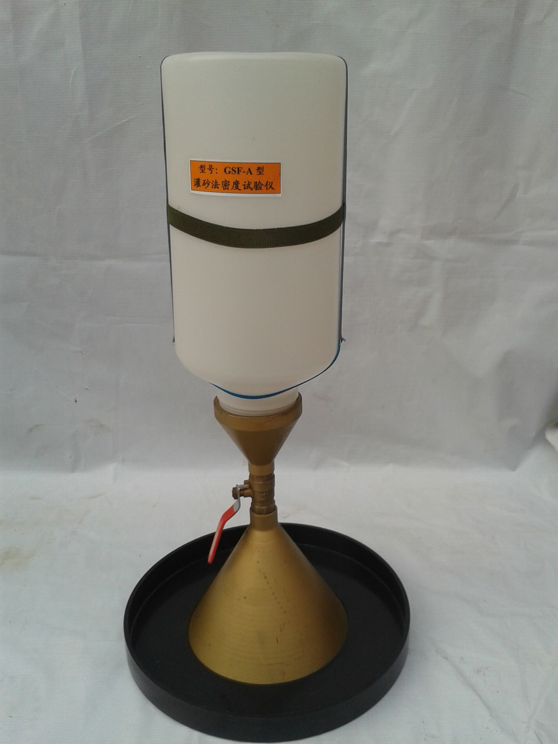 1、密度測定器:由容砂瓶、灌砂漏斗和底盤組成。容砂瓶和灌砂漏斗之間用螺紋接頭聯(lián)接。底盤承托灌砂漏斗和容砂瓶。