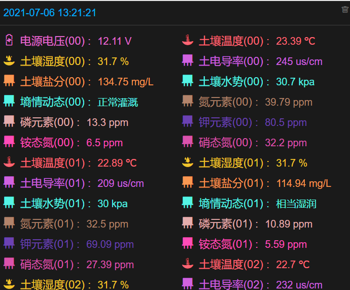 1、可在線對土壤水分、土壤溫度、土壤電導(dǎo)率、土壤養(yǎng)分、土壤含鹽量、銨態(tài)氮、硝態(tài)氮、速效氮、速效磷、有效鉀、水勢等參數(shù)進行監(jiān)測。