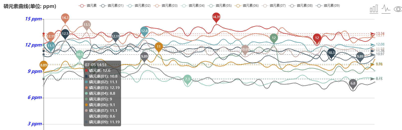 5、用戶可以隨時通過手機和計算機遠(yuǎn)程查看、下載數(shù)據(jù)。軟件可以查看數(shù)據(jù)編號、曲線走勢圖、最高值、最低值、平均值。用戶可根據(jù)土壤水分和電導(dǎo)率、水勢、氮磷鉀養(yǎng)分的數(shù)據(jù)變化來分析土壤各個參數(shù)之間的關(guān)聯(lián)性和相互影響。